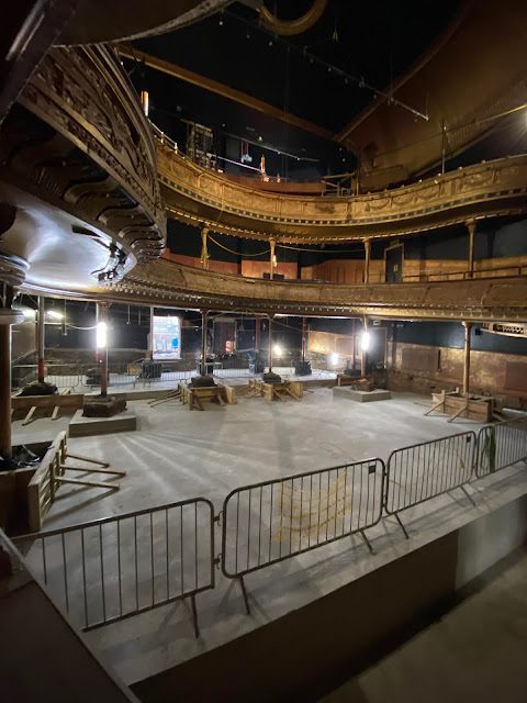 Auditorium after foundation work being completed. This view is from one of the boxes showing the band pit on the right. Photo by Graham Sutherland